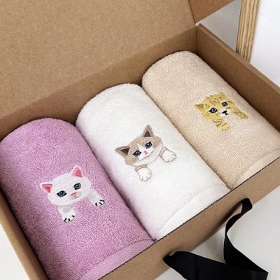 송월 야옹프렌즈 세면타월 3매선물세트 크라프트