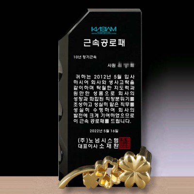 노넘시스템 근속공로패 제작 블랙 크리스탈 금속다이패