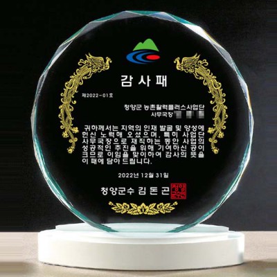 청양군수 감사패 크리스탈패 퇴직선물 재직기념패 표창패
