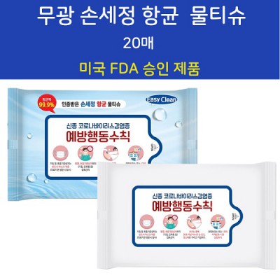 FDA승인 무광 손세정 항균물티슈 20매
