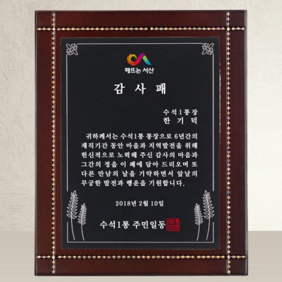 마을통장 감사패 제작 기념패 재직기념패 퇴직