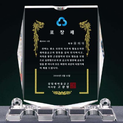 삼일새마을금고 표창패 장기근속선물 크리스탈패 교회공로패 기업상패