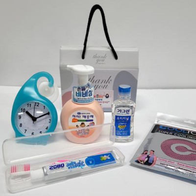 선물세트 8종 핸드워시 가그린 치약 칫솔 흡착시계 쿨타올