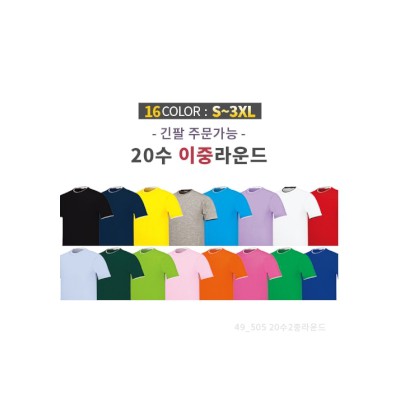 코마 20수 베이직 이중 라운드 티셔츠 반팔/긴팔