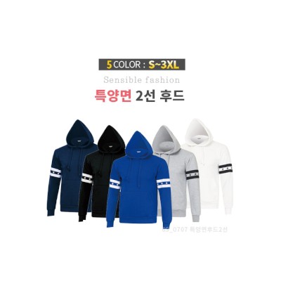 특양면 별소매 2선 후드 티셔츠