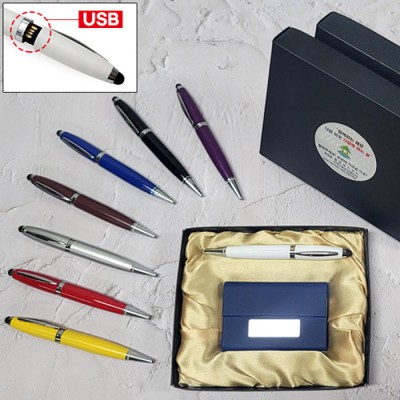 선물세트2종 칼라 명함케이스+칼라볼펜 USB메모리(8G)